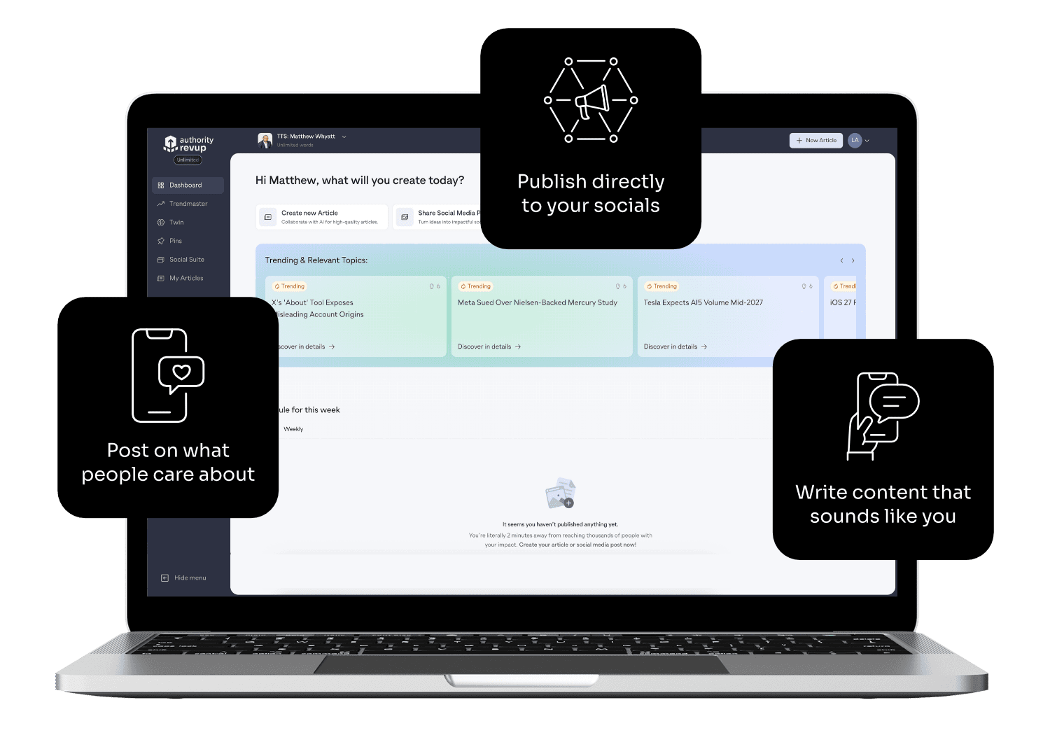 Authority RevUp installs that engine so your visibility stays consistent and your message stays sharp even when you're flat out running the business.